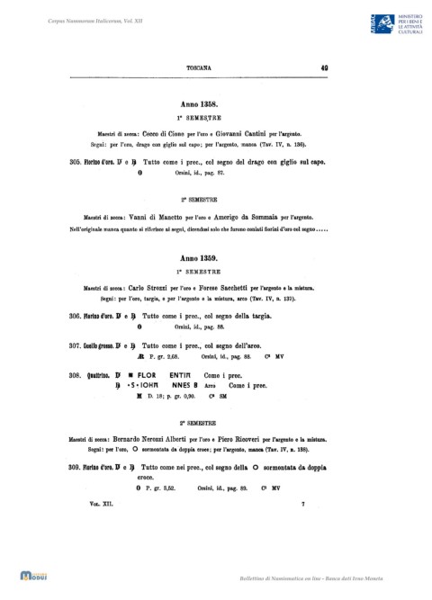 Maestri di zecca: Vanni di Manetto per l'oro e Amerigo da Sommaia per l'argento.