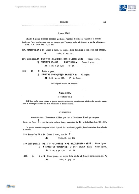 Maestri di zecca: Niccolò Soldani per l'oro e Guccio Nobili per l'argento e la mistura.