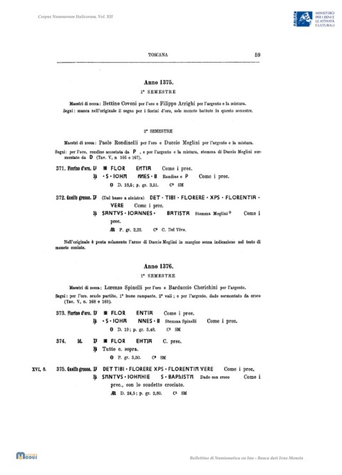 Maestri di zecca; Lorenzo Spinelli per l'oro e Barduccio Cherichini per l'argento.