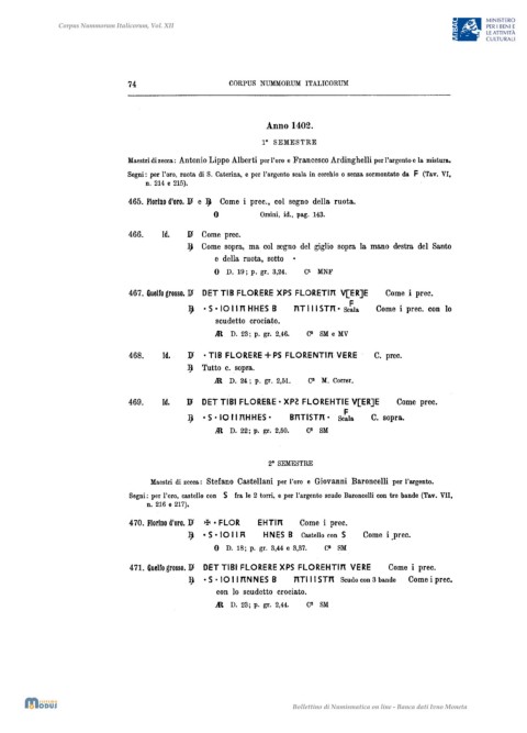 Maestri di zecca: Antonio Lippo Alberti pcrl'oro e Francesco Ardinghelli perl'argento e la mistura.