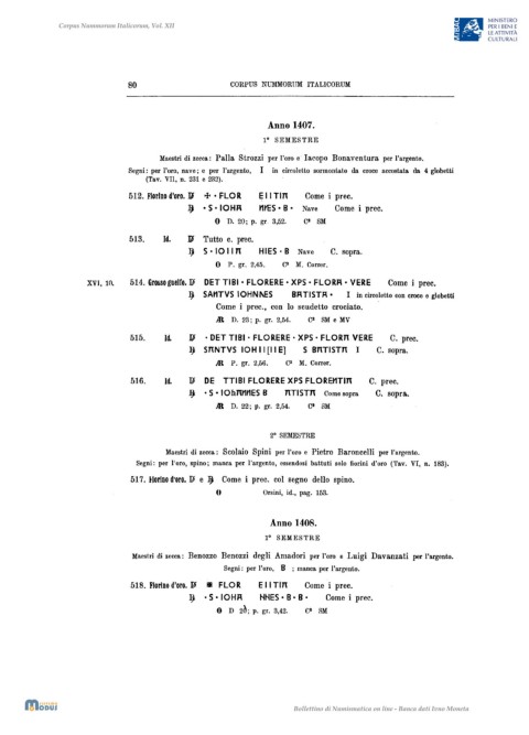 Maestri di zecca: Palla Strozzi per l'oro e Iacopo Bonaventura per l'argento.