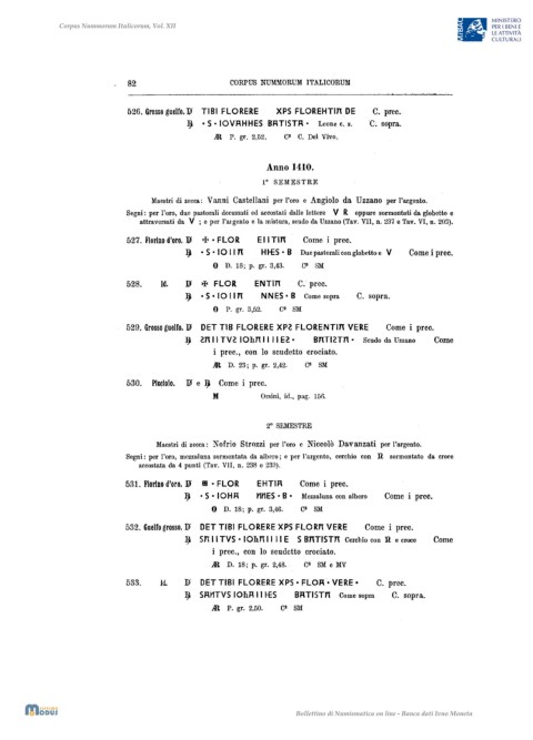 Maestri di zecca: Vanni Castellani per l'oro e Angiolo da Uzzano per l'argento.