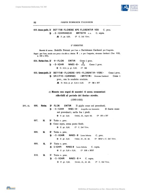 604. Fiorino d'oro. ]i)' +. FLOR ENTIR Come i prec.